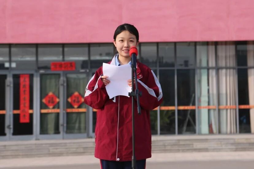 教师代表高三年级刘珊伊老师则深情寄语:“老师们的爱,不单来自讲台上的谆谆教诲,更蕴于课后窗边的伏案身影、作业本上密密麻麻的批注、晨光里早到的守候与晚自习末那盏未熄的灯。”她代表全体老师承诺将与同学们携手同行,共同奔赴新程。这份温暖而坚定的承诺,如春风化雨,滋润着每一位学子的心田。