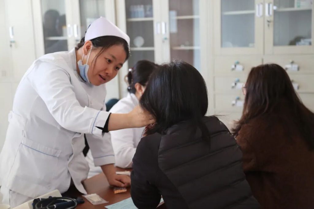 本次活动分为筛查义诊与健康宣讲两大板块,组织有序、氛围温馨。在筛查义诊环节,医护人员借助专业设备,细致开展检查。针对每位教职工的检查结果和问题咨询,专家团队结合丰富临床经验,给出了权威专业的医学解读,并量身定制科学合理的健康指导与生活方式优化建议。义诊项目涵盖妇产科B超、乳腺检查、中医问诊及把脉、耳穴压豆等多个项目,切实将关爱落到实处。
