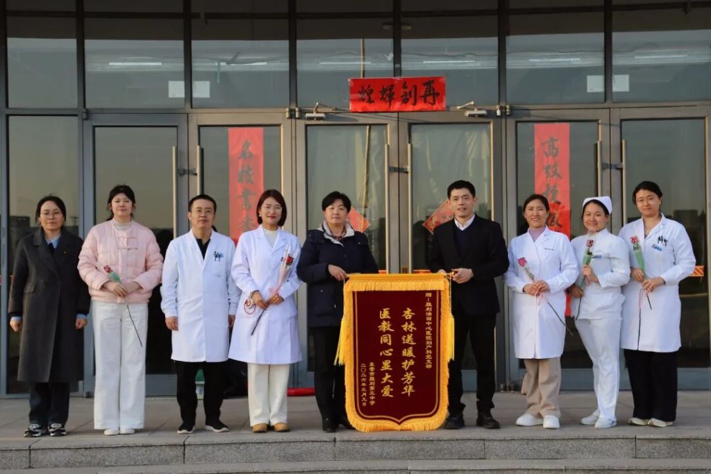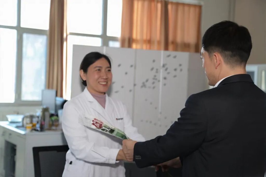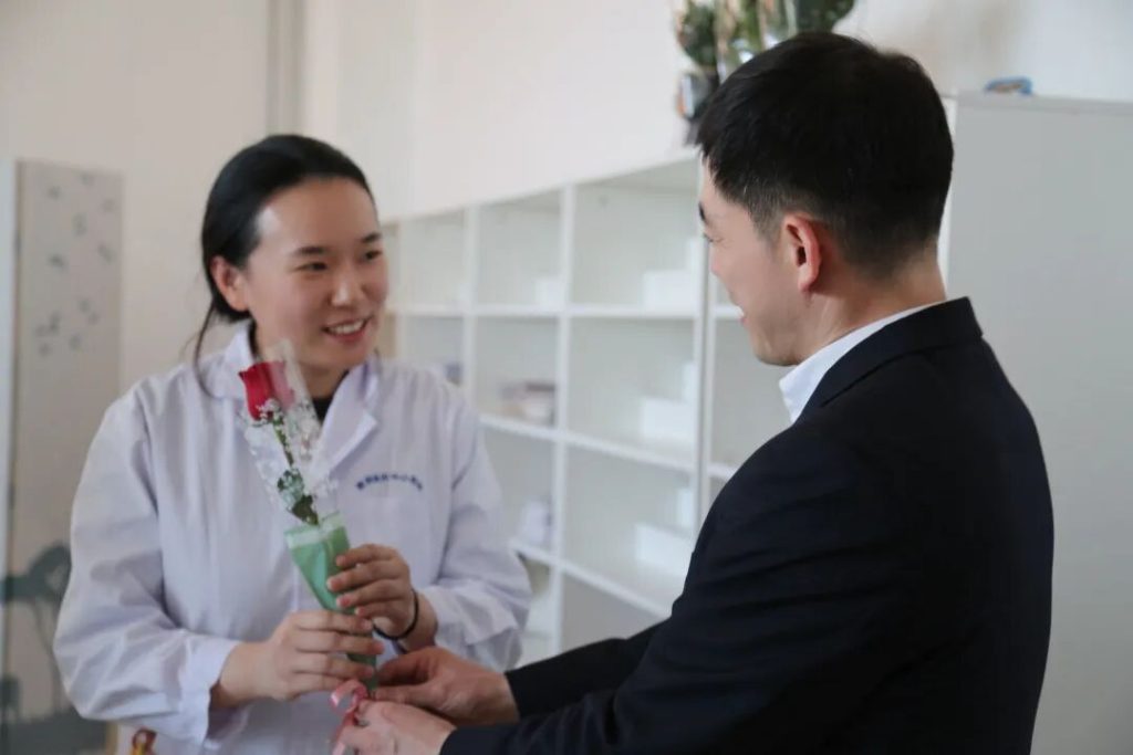 校长刘敏为医护人员送上节日鲜花与诚挚祝福