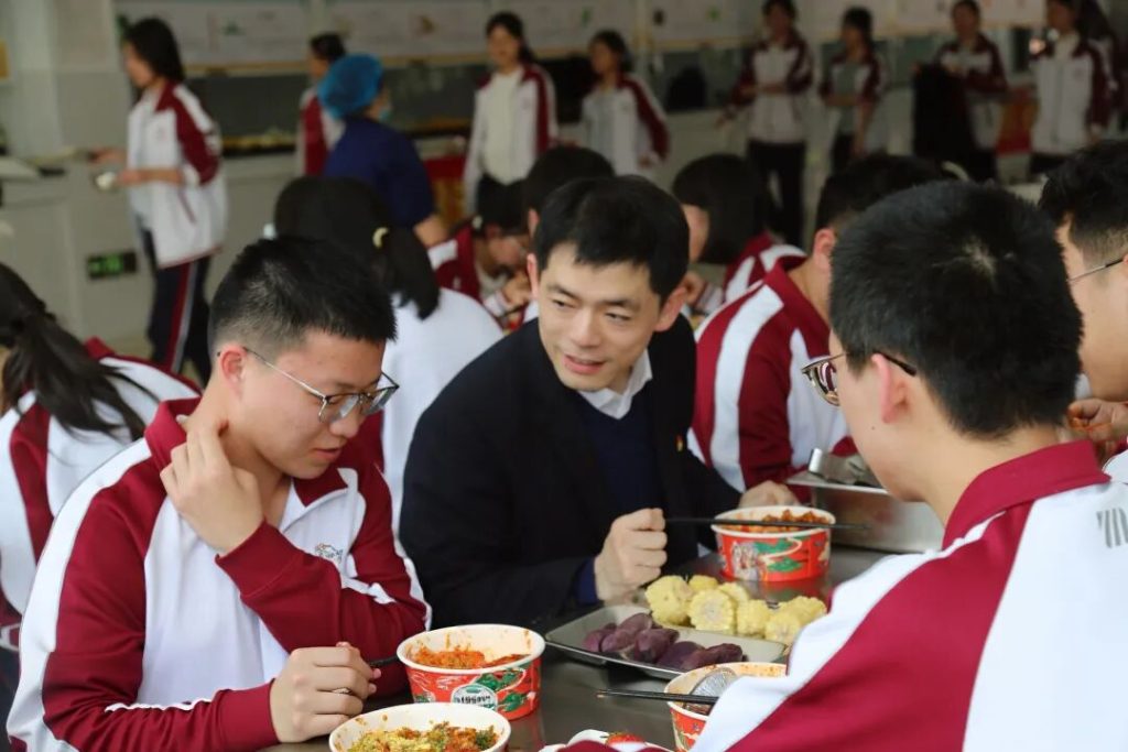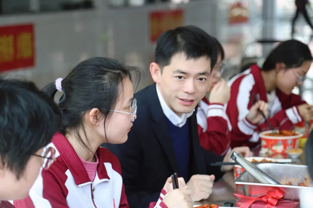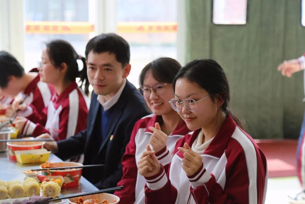 餐桌上,没有说教,只有家常的关切;没有隔阂,只有真诚的交流。从备考策略到心态调适,从困惑疏导到细节打磨,刘校长倾听心声、把脉问诊、寄语鼓劲。“这顿饭,吃出了家的味道,更吃出了前行的力量!”同学们言语间满是感动与振奋,他们感受到的,不仅是学校对学生成长成才的悉心呵护,更是校长和老师们“以生为本”的舐犊情深。刘校长勉励大家坚定信念、稳定心态、持之以恒、勇毅前行,以必胜之姿备战高考,圆梦六月。
